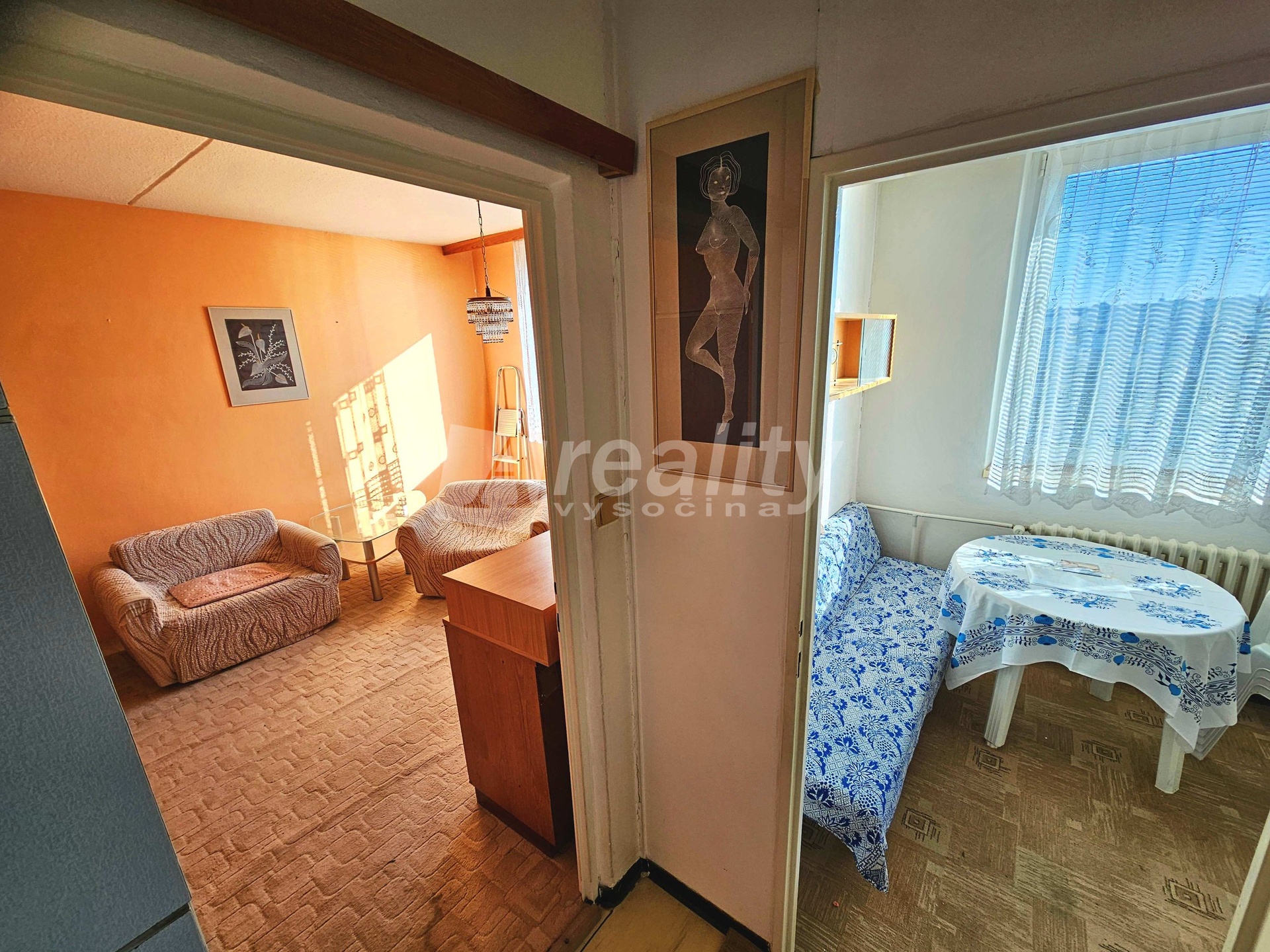Zprostředkujeme Vám ve výhradním zastoupení prodej bytu na Královském vršku v Jihlavě. Jednotka o dispozici 1+1 se nachází ve 4. patře panelového domu bez výtahu a je v původním, ale zachovalém stavu. Umakartové jádro umožňuje k případné rekonstrukci manévrovací prostor v podobě velikosti koupelny i kuchyně. K dispozici zůstanou nábytek a lednička, lze tedy prakticky ihned využívat. Vytápění a ohřev vody řešeny dálkově, úspoře tepla napomáhají jižní orientace a plastová okna. Možnost využívání lodžie v mezipatře, součástí prodeje je prostorná sklepní kóje. Byt je umístěn v nejvyšším podlaží pod zateplenou střechou. Tato poloha zajišťuje nádherný výhled do údolí řeky Jihlavy a na samotné město. Ulice Královský vršek je díky svojí poloze velmi vyhledávanou lokalitou. V blízkostí supermarkety a nákupní centrum.