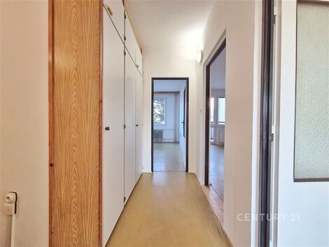 Nabízíme k prodeji prostorný byt o dispozici 3+1 s lodžií v širším centru města Havlíčkův Brod - ulice Jihlavská. Byty v této lokalitě se na trhu objevují pouze zřídka. Byt se nachází v 1. nadzemním podlaží panelového domu s výtahem (nový výtah před 5 lety). Celková podlahová plocha bytu činí 79,1 m2, k bytu náleží také lodžie o velikosti cca 3,7 m2 a sklepní kóje v suterénu domu. V domě jsou k dispozici 2 místnosti na úschovu kol přístupné přímo z ulice. Dispozice bytu nabízí prostornou předsíň 6,9 m2, kuchyň s jídelním prostorem 12,4 m2, tři samostatné neprůchozí pokoje 20,5 m2, 18,3 m2, 14,3 m2, koupelnu 2,6 m2, samostatné WC 1 m2 a praktickou komoru o velikosti 3,1 m2 přístupnou přímo z chodby. Z jednoho z pokojů je vstup na lodžii. Velkou výhodou bytu je orientace na dvě světové strany - východ a západ. Dva pokoje jsou orientovány na východ, kde je příjemné ranní světlo. Kuchyň a obývací pokoj směřují na západ s výhledem částečně do zeleně, pod okny protéká potok Žabinec. Na východní straně jsou plastová okna s dvojskly, na západní straně byla instalována plastová okna s trojskly, která velmi dobře tlumí hluk z okolní komunikace. Byt je v původním, udržovaném stavu, což novému majiteli umožňuje rekonstrukci dle vlastních představ. Velkou výhodou je prostorná kuchyň, která nabízí zajímavé možnosti úpravy dispozice při rekonstrukci bytového jádra, například rozšíření koupelny nebo vytvoření moderní kuchyně s jídelním prostorem. Strop v suterénu domu je zateplen. Velkým benefitem je také okolí domu. Přímo před domem se nachází dětské hřiště a vedle domu se nachází sportovní hřiště s umělým povrchem, které je vhodné například pro tenis nebo výuku jízdy na kole. Parkování je možné přímo u domu při komunikaci, případně na velkém veřejném parkovišti v blízkosti domu, dostatečné množství volných parkovacích míst v pozdních a večerních hodinách. V docházkové vzdálenosti se nachází centrum města, obchody, zastávka MHD, poliklinika i cyklostezka podél řeky Sázavy, která nabízí příjemné možnosti procházky i sportu. Byt je vhodný jak pro rodinné bydlení, tak jako investice s možností rekonstrukce dle vlastních představ. Byt je v osobním vlastnictví, není zatížen žádnou zástavou ani právní vadou a je možné jej bez omezení financovat hypotečním úvěrem. Byt je vyklizen a je ihned k dispozici Měsíční náklady na bydlení budou doplněny po obdržení aktuálních podkladů od SVJ. V případě zájmu o více informací nebo domluvení prohlídky mě neváhejte kontaktovat.